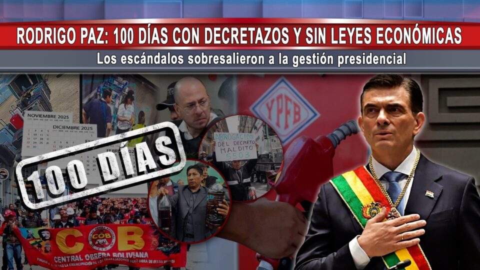 Bolivia, 18 feb 2026 (RED DTV).- A cien días de gestión, el gobierno nacional enfrenta un balance marcado por decisiones vía decreto, cuestionamientos políticos y una agenda económica aún pendiente. Analistas coinciden en que la única medida estructural aplicada hasta ahora ha sido el levantamiento de la subvención a los carburantes, mientras se acumulan controversias como el caso de las maletas, la crisis por la gasolina de mala calidad vinculada a YPFB y el incremento de tarifas aéreas nacionales.