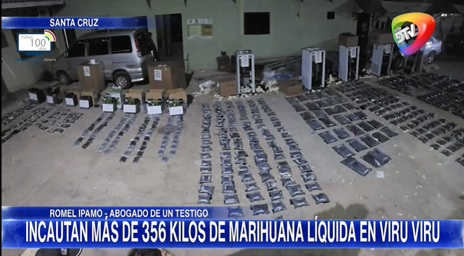 SCZ, 19 feb 2026 (RED DTV).- Un total de 356 kilos de m4rihu4n4 líquida o húmeda, camuflados en equipos electrónicos y maquinaria industrial, fueron hallados en dos cargamentos procedentes de Miami, Estados Unidos, que arribaron al Aeropuerto Internacional de Viru Viru en Santa Cruz. La sustancia —que según la información tiene un valor cercano al de un kilo de c0c41na— fue detectada tras inconsistencias en el peso declarado en la póliza aduanera, lo que activó la alerta del personal de la Aduana y derivó en la intervención de la FELCN y el Ministerio Público.