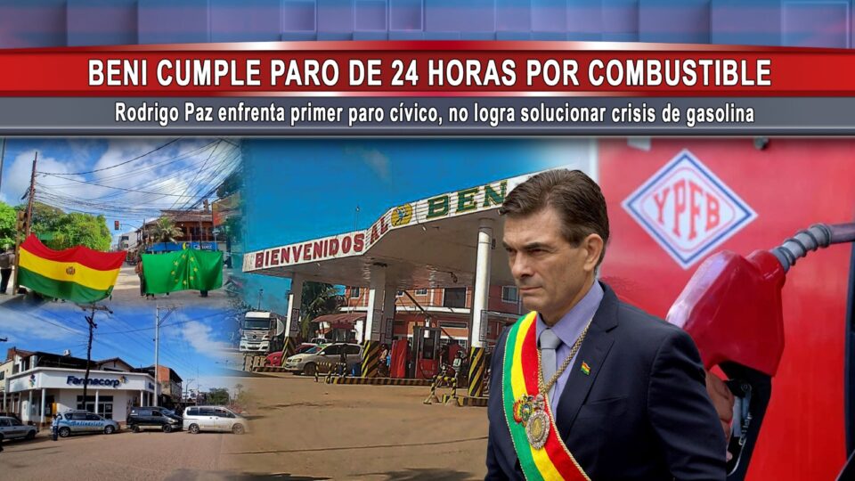 SCZ, 20 feb 2026 (RED DTV).- A tan solo 104 días de gestión, el presidente Rodrigo Paz enfrenta su primer paro cívico. La medida se cumple en el departamento del Beni, donde sectores cívicos denuncian “abandono, maltrato y desprecio” por parte de las autoridades, además de cinco días sin combustible. Aseguran que primero recibieron carburante de mala calidad y ahora directamente no hay abastecimiento. Advierten que esta es solo la primera medida y que podrían venir acciones más drásticas.