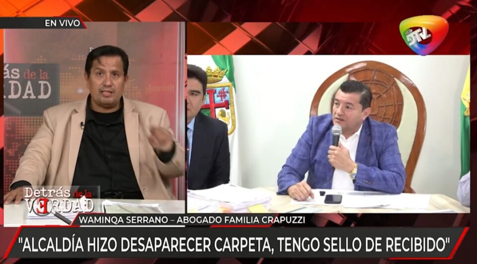 La Paz, 31 de oct de 2025 (RED DTV).– El abogado de la familia Crapuzzi, Waminqa Serrano aseguro que el alcalde Jhonny Fernández miente y asegura que la familia Crapuzzi presento la carpeta al municipio sobre los predios del Mercado Mutualista por lo que pide revisar para comprobar que, si cumplen los requisitos y así le puedan entregar el certificado catastral y el uso de suelo, “alcalde, traiga mi carpeta, la escondió”, señaló.