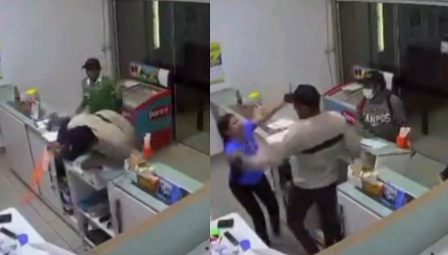 Durante el hecho, uno de los as4lt4ntes saltó por una de las vitrinas para ingresar al local. La encargada, al percatarse del robo, intentó detener al sujeto; sin embargo, este sacó un 4rm4 de fu3g0 y le apuntó, obligándola a retroceder.
