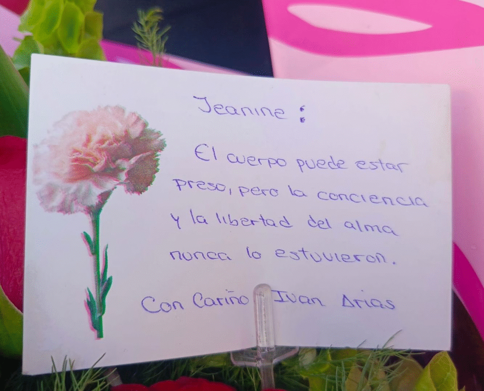 “Hoy decidí enviarte flores y celebrar tu libertad con la saya querida expresidenta Jeanine Añez. ![]()