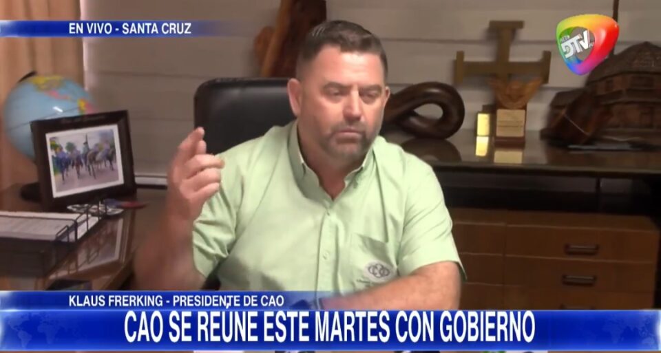 La Paz, 24 nov de 2025 (RED DTV).- La Cámara Agropecuaria del Oriente (CAO) sostendrá este martes una reunión clave con el Gobierno para abordar la crisis que atraviesan varias cadenas productivas del país. Su presidente, Klaus Frerking, advirtió que la eliminación de los cupos de la franja de precios y las exigencias de vender a precios fijos están afectando a sectores como el lechero, donde —según detalló— se cerraron 600 unidades productivas en Cochabamba y 110 en Santa Cruz.