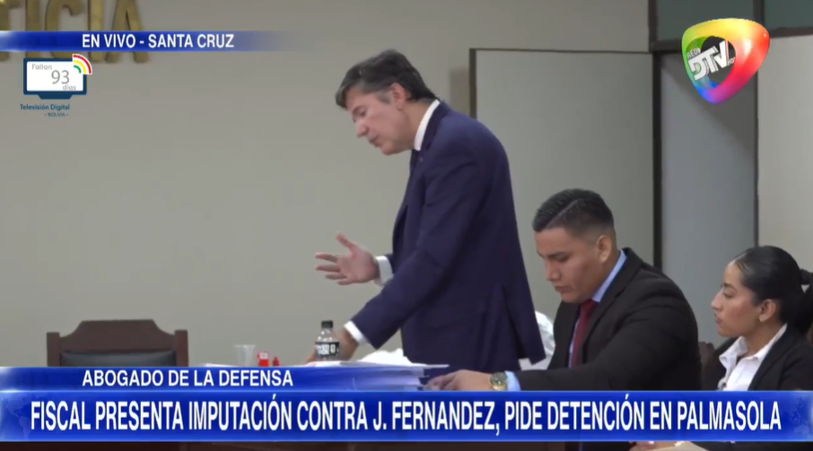 SCZ, 26 feb 2026 (RED DTV).- Durante la audiencia, el abogado Fabio Joffré sostuvo que “mi defendido no es autor” y afirmó que el informe de auditoría sobre obras de pavimentación no establece responsabilidad directa. La Fiscalía investiga al alcalde de Santa Cruz de la Sierra por presunto incumplimiento de deberes y conducta antieconómica, y solicitó su detención preventiva en Palmasola.