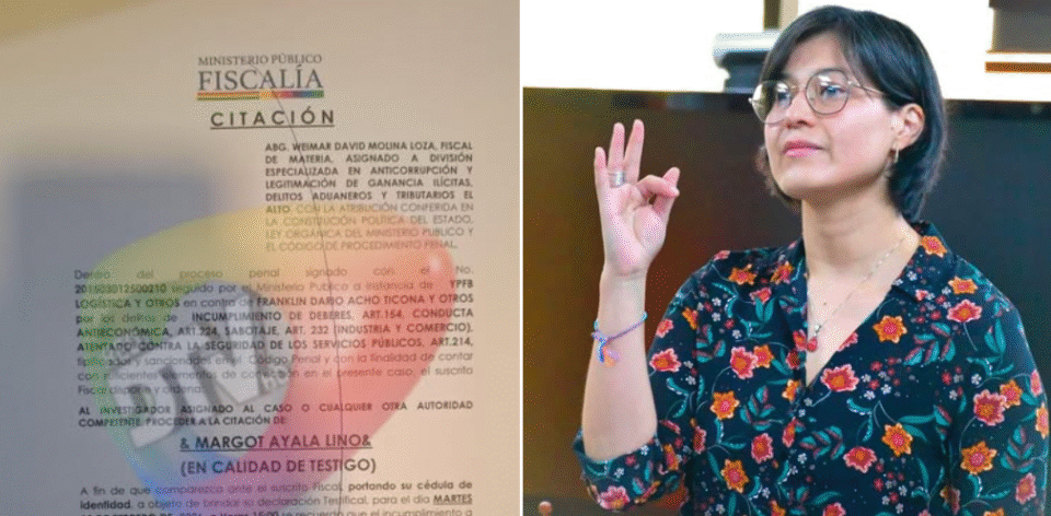 Bolivia, 6 feb 2026 (RED DTV).- La Fiscalía Especializada en Anticorrupción de El Alto citó a Margot Ayala Lino, directora de la Agencia Nacional de Hidrocarburos (ANH), a declarar como testigo en el marco del proceso penal No. YPFB 201503012500210, tras detectarse cisternas de gasolina con agua. La institución no presentó ninguna denuncia sobre al menos 15 incidentes similares durante la gestión del gobierno de Luis Arce, generando cuestionamientos sobre su responsabilidad en la supervisión del combustible.