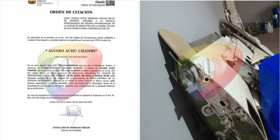 SCZ, 9 abr 2026 (RED DTV).- El Ministerio Público emitió una orden de citación contra el mayor Álvaro Achú Chambi en el marco de la investigación por el presunto hurto de cuatro pares de alas de aviador militar, un caso que se conecta con las recientes revelaciones sobre irregularidades en el manejo de material aeronáutico dentro de la Fuerza Aérea Boliviana (FAB).