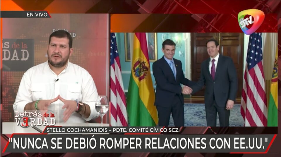 La Paz, 01 de nov de 2025 (RED DTV).– El presidente del Comité Cívico Pro Santa Cruz, Stello Cochamanidis, destacó la reunión del presidente electo Rodrigo Paz con el senador estadounidense Marco Rubio, al considerar que la relación diplomática con Estados Unidos “nunca debió romperse”.