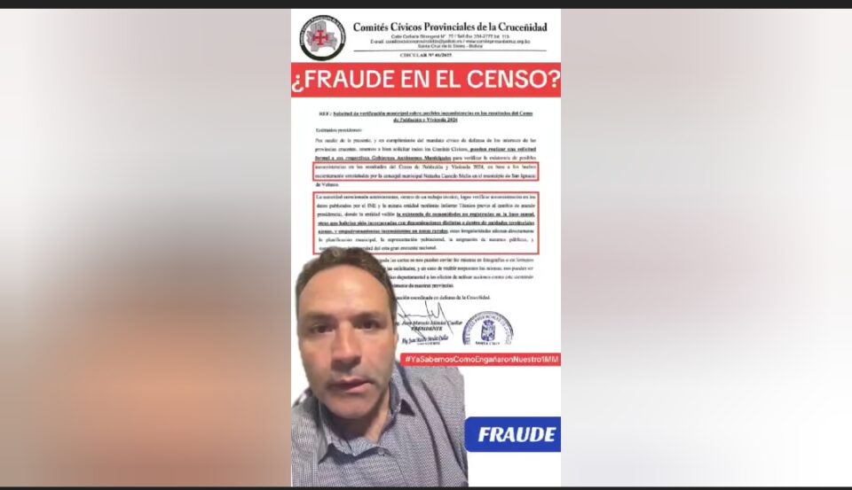 La alerta se originó después de que se conociera una circular interna de los Comités Cívicos Provinciales de Santa Cruz, que instruye a revisar si hay personas censadas que no figuran en los registros oficiales del Instituto Nacional de Estadística (INE).
