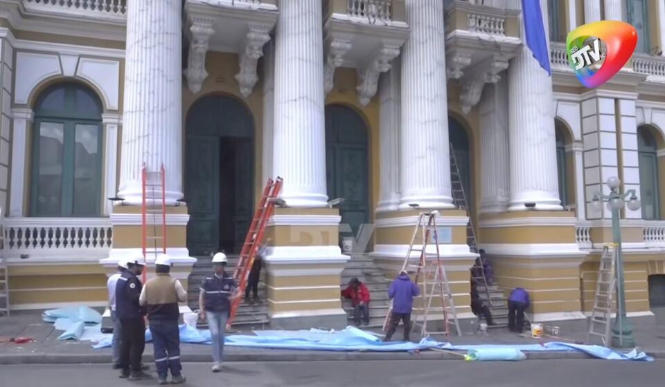 La Paz, 01 de nov de 2025 (RED DTV).– A una semana del acto de transmisión de mando, se ejecutan trabajos de mantenimiento en la fachada del nuevo edificio de la Asamblea Legislativa Plurinacional y también en la antigua infraestructura.