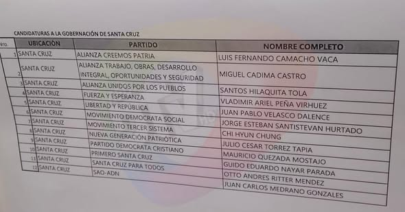 Candidatos a la Alcaldía de Santa Cruz de la Sierra