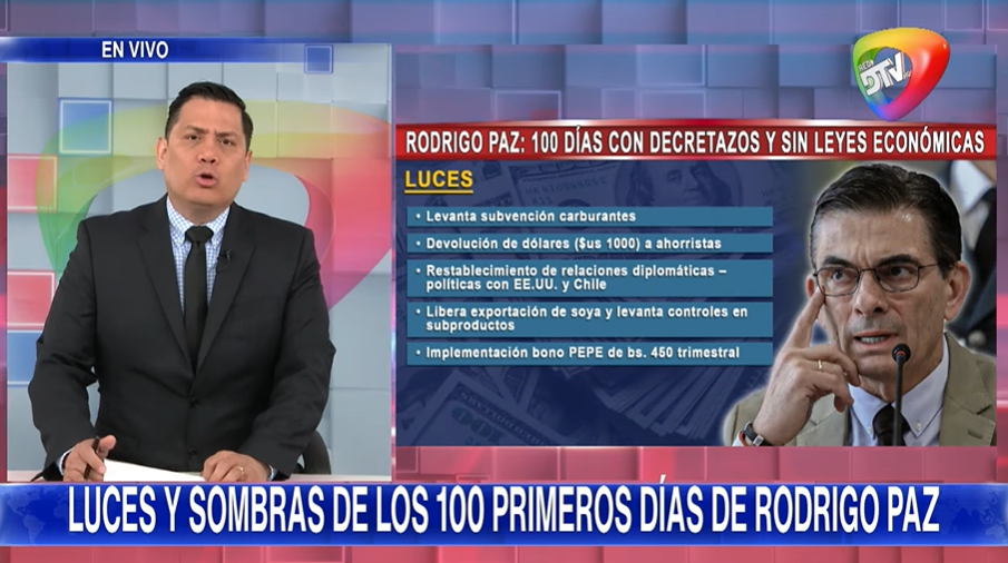 Bolivia, 18 feb 2026 (RED DTV).- Se cumplen los primeros cien días del gobierno de Rodrigo Paz, una gestión marcada por decisiones económicas vía decreto y una agenda que combina anuncios de impacto con una creciente lista de cuestionamientos políticos y financieros.