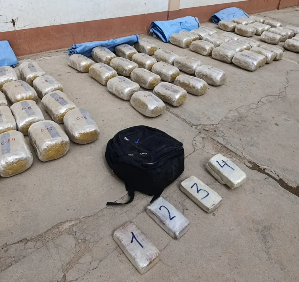 Según los antecedentes, el operativo se llevó a cabo el 5 de marzo de 2026, cuando agentes de la Fuerza Especial de Lucha Contra el Narcotráfico (FELCN) realizaban un patrullaje en el sector fronterizo entre Bolivia, Argentina y Chile. En el lugar observaron a varias personas trasladando bultos sospechosos, quienes al notar la presencia policial abandonaron la carga y huyeron. Posteriormente se incautaron bolsas con marihuana y una mochila con pasta base de cocaína, sustancias que dieron positivo en las pruebas de campo. El caso es investigado por el fiscal José Luis Terceros bajo conocimiento del Juzgado Público de Familia e Instrucción Penal N°1 de Villazón.
