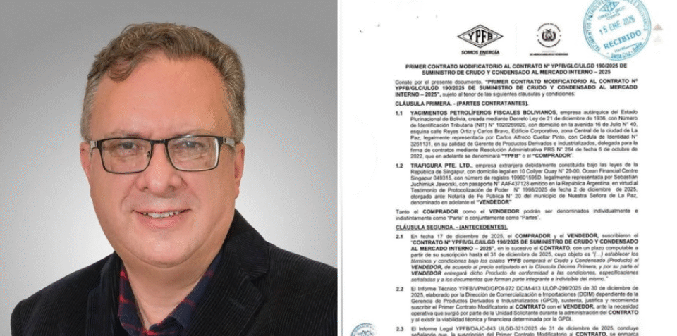 LPZ, 18 feb 2026 (RED DTV).- Una controversia política crece en Bolivia tras la difusión en redes de dos documentos que apuntan a un contrato de suministro de crudo entre YPFB y Trafigura Pte. Ltd., pese a que el Gobierno y la estatal petrolera han negado su existencia. El diputado Carlos Alarcón afirma que las autoridades deben explicar si los documentos son falsos o auténticos, y justificar condiciones clave del acuerdo, incluidos cambios contractuales, precios cuestionados y la elección de una firma con antecedentes de sanciones internacionales vinculadas a casos de sobornos en Angola y a funcionarios de Petrobras, investigados en Suiza y Estados Unidos.