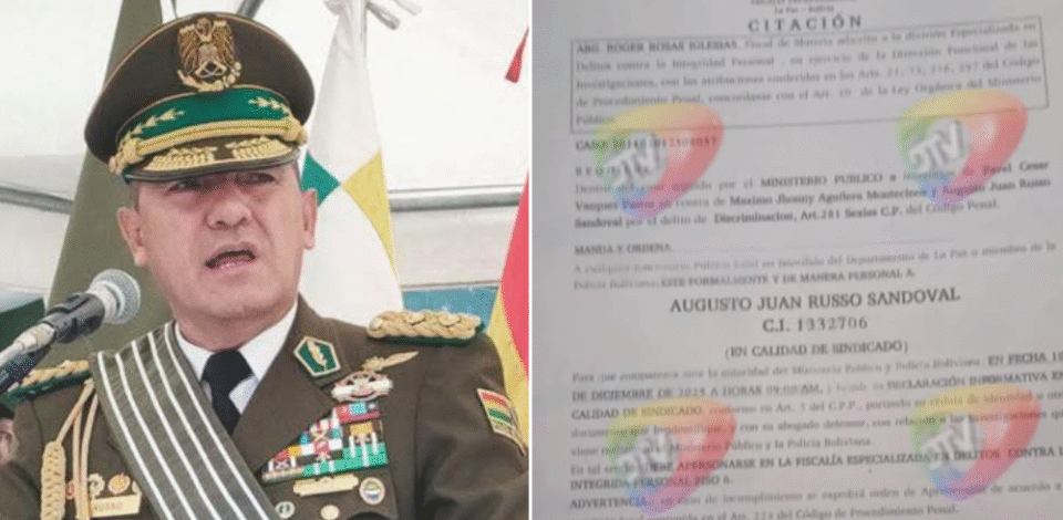 La citación aparece después de que, el pasado 12 de noviembre, el vicepresidente Edman Lara señalara que Russo no podía continuar al mando de la institución debido a procesos aún abiertos. Lara recordó que una orden de la Sala Constitucional de Beni, emitida el 23 de enero, dispuso enviar los antecedentes del entonces jefe policial al sistema disciplinario y al Ministerio Público por no acatar un fallo que permitía a un subalterno acceder a cursos de posgrado, acto que derivó en una denuncia por discriminación.