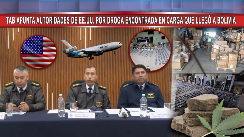 El general Sergio Lora apunta a las autoridades de Norteamérica, sí. El comandante de la FAB, junto al gerente de Transporte Aéreo Boliviano, dijo que ellos reciben la carga verificada de la aduana norteamericana, entregan esa carga a 1 agencia despachadora, para que luego sea el CBP en Estados Unidos, que es la aduana, la que vaya a verificar junto a las instancias antidrog4s si se puede o no establecer en palets la carga como tal, que luego va a ser subida al avión del TAB que va a trasladarla hasta el aeropuerto internacional de Viru Viru.