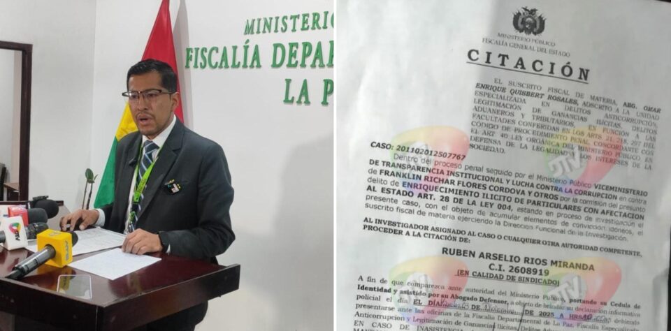 La Paz, 26 nov de 2025 (RED DTV).–El fiscal de Transparencia, Omar Quisbert, informó que el Ministerio Público investiga a cinco personas, entre ellas el exgerente de EMAPA, Franklin Richard Flores, y el dirigente panificador Rubén Ríos, por presuntos hechos de corrupción en convenios de subvención de harina, que habrían ocasionado un daño económico de Bs 6,2 millones.