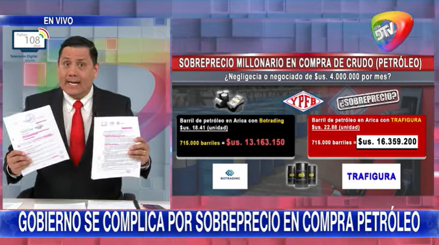 Existen dos contratos que evidencian un sobreprecio millonario en la compra de crudo. Las revelaciones provocaron respuestas del presidente de YPFB y del ministro de Hidrocarburos, Yussef Akly y Mauricio Medinacelli, quienes intentaron explicar la operación. Sin embargo, lejos de aclarar la situación, las declaraciones oficiales generan mayores contradicciones.