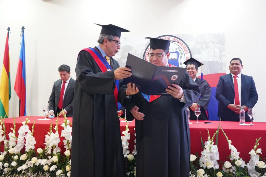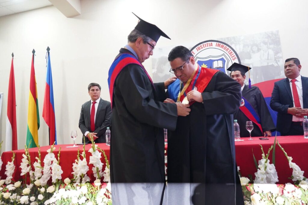 El Rector de la Universidad Juan Misael Saracho, Eduardo Cortez, expresó su compromiso con la excelencia, el mérito y la contribución al desarrollo del país, resaltando a personalidades que dejan huella en la administración pública y la justicia boliviana como el Fiscal General del Estado, Roger Mariaca Montenegro, que está al frente de una gestión marcada por la ética, el liderazgo y la búsqueda constante de una justicia más cercana a la población y de puertas abiertas.