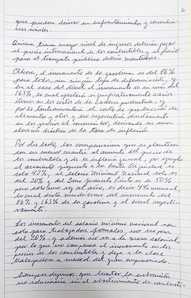 Ahora, el incremento el incremento de la gasolina es del 86% para todos, sin ningún tipo de diferenciación, y en el caso del diésel el incremento es en más del 163%, lo cual afectará significativamente varios ítems en los costos de la cadena productiva, y por lo tanto aumentará el costo de producción de alimentos y otros, y eso repercutirá directamente en los precios al consumidor, derivando en una elevación drástica de la tasa de inflación.