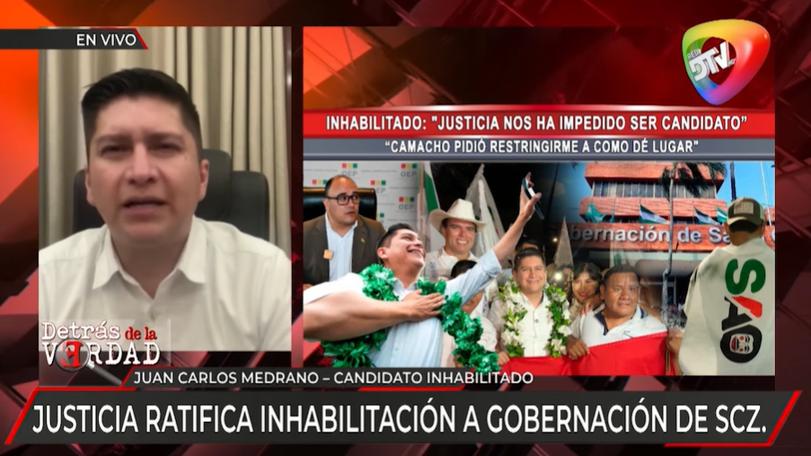 SCZ, 6 feb 2026 (RED DTV).- Juan Carlos Medrano expresó su descontento con la decisión de la justicia en Santa Cruz que ratificó su inhabilitación como candidato a la gobernación. “Jamás pensé que un día sería víctima de la justicia”, declaró Medrano, calificando la determinación de “una vergüenza”.