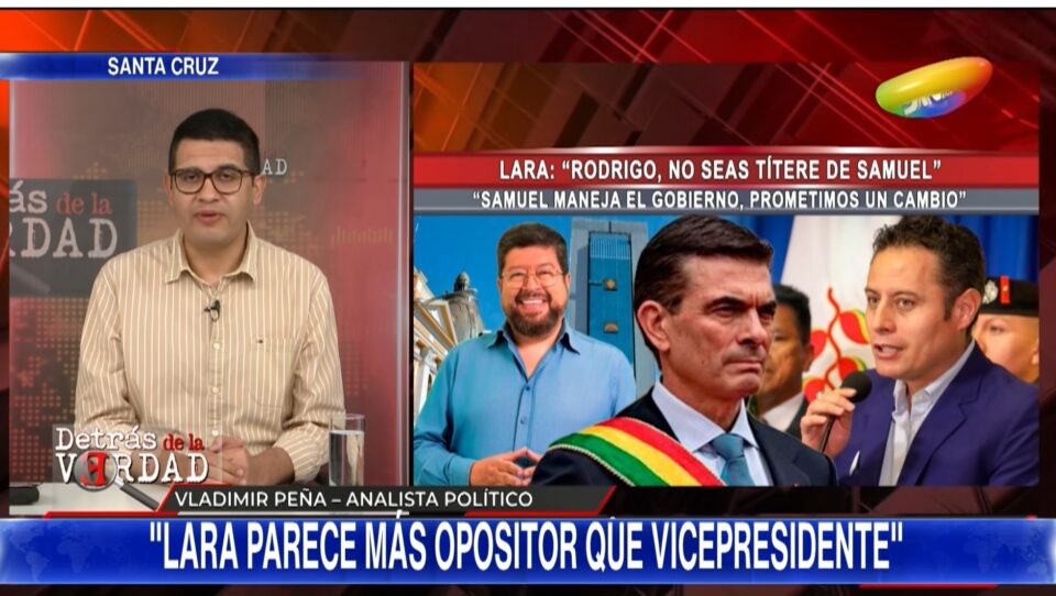 La Paz, 21 nov de 2025 (RED DTV).–El analista y abogado Vladimir Peña cuestionó la relación entre Edmand Lara y el presidente Rodrigo Paz, afirmando que el Vicepresidente “parece más un opositor que parte del Gobierno”.Sostuvo que Paz “co gobierna con Samuel Doria Medina” y que ambos deberían transparentar esa alianza: “No es malo ser una coalición, lo malo es mentirle a la ciudadanía”, advirtió.
