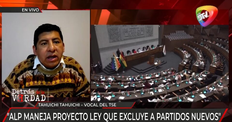 La Paz, 19 nov de 2025 (RED DTV).- El vocal del TSE Tahuichi Tahuichi denuncia que “una mente maquiavelica” del legislativo le “metió la mano” al proyecto de ley de las elecciones subnacionales 2026, porque asegura que el TSE no envió a la ALP un proyecto de ley que excluye a nuevos partidos políticos.
