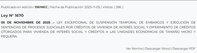 La Paz, 05 de nov de 2025 (RED DTV).– En la última reunión de su gabinete ministerial, el presidente Luis Arce promulgó hoy la ley de diferimiento de créditos, que suspende por seis meses los embargos y la ejecución de sentencias judiciales relacionadas con préstamos de vivienda, buscando aliviar la carga de los deudores en el país.