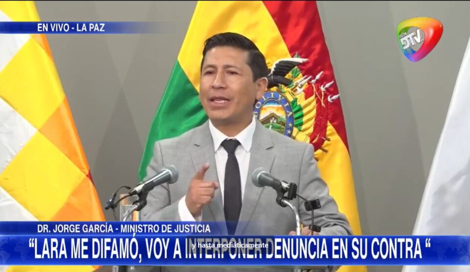 La Paz, 20 nov de 2025 (RED DTV).- El recién posesionado ministro de Justicia, Jorge García, se pronunció respecto a las críticas emitidas por el vicepresidente Edmand Lara, asegurando que sus declaraciones han vi0l4d0 su derecho a la presunción de inocencia.