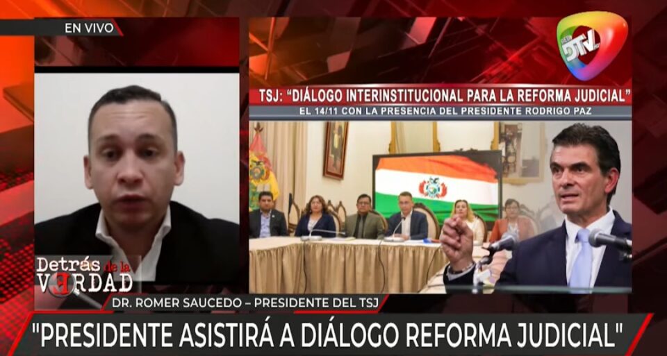 La Paz, 13 de nov de 2025 (RED DTV).- Romer Sauceso presidente del Tribunal Supremo de Justica, informo que este viernes 14 de noviembre se desarrollara el “Diálogo Interinstitucional para la Reforma Judicial” en la ciudad de Sucre, evento al cual confirmo asistencia el presidente Rodrigo Paz.