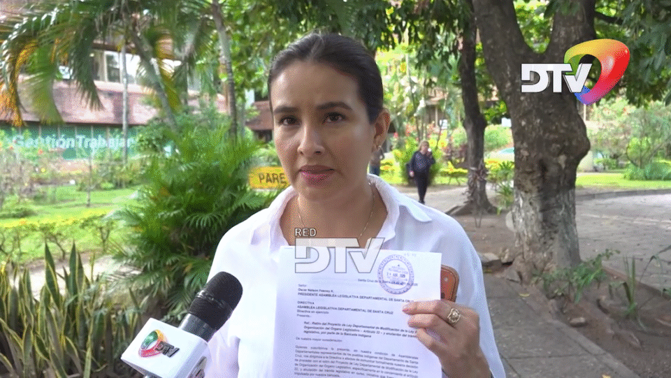 SCZ, 24 abr 2026 (RED DTV).- La vicegobernadora electa de Santa Cruz, Paola Aguirre, informó que este viernes fue retirado el proyecto de ley que buscaba modificar la normativa de organización de la Asamblea Legislativa Departamental (ALD), el cual planteaba que la presidencia sea asumida por las minorías. Según indicó, la iniciativa fue dejada sin efecto tras la decisión de la jefa de bancada de los pueblos indígenas. “La jefa de bancada de los pueblos indígenas ha retirado el proyecto en cuestión”, señaló.