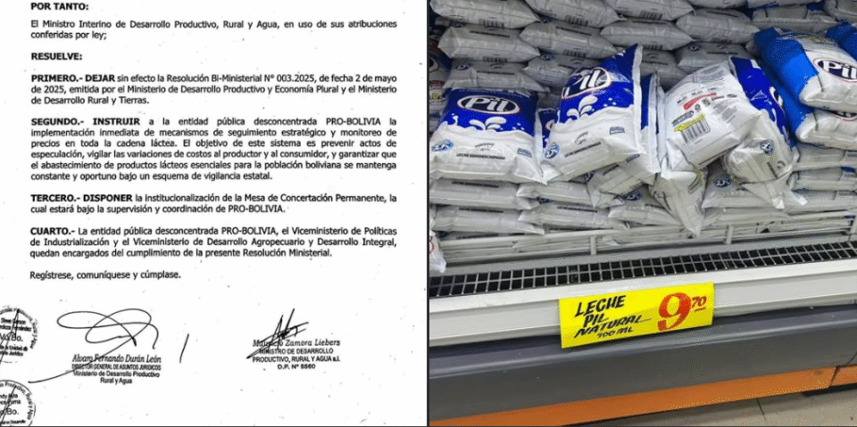 Bolivia, 24 abr 2026 (RED DTV).- La periodista Mery Vaca cuestionó el incremento en el precio de la leche en el país y atribuyó la subida a una decisión del Gobierno de desregular su costo mediante una resolución firmada por el ministro Mauricio Zamora, en reemplazo de Oscar Mario Justiniano. Según explicó, la medida permitió que el precio sea definido directamente entre productores e industrializadores, quienes acordaron nuevos valores vigentes desde inicios de abril: “En síntesis, subió la leche luego de que el Gobierno liberó el mercado para atender el reclamo de los productores”.