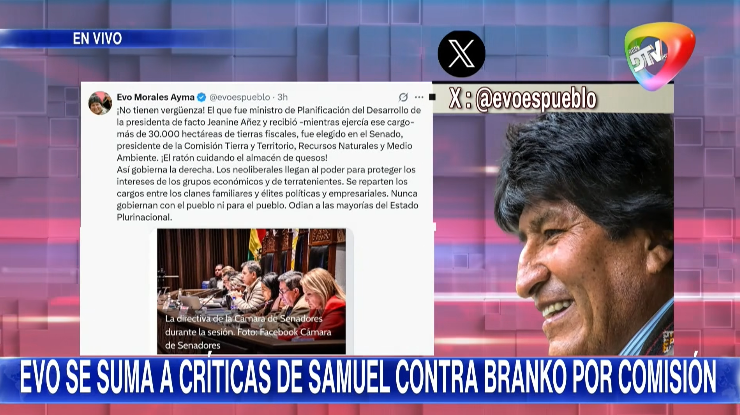Evo se une a ataque de Samuel contra Branko: ‘Ratón cuidando almacén de quesos’, con Añez recibió más de 30.000 hectáreas de tierras fiscales”