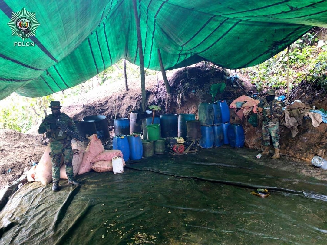 CBBA 25 de abr de 2026.- Efectivos de la Fuerza Especial de Lucha Contra el Narcotráfico (Felcn) incineraron ocho fábricas móviles de elaboración de pasta...