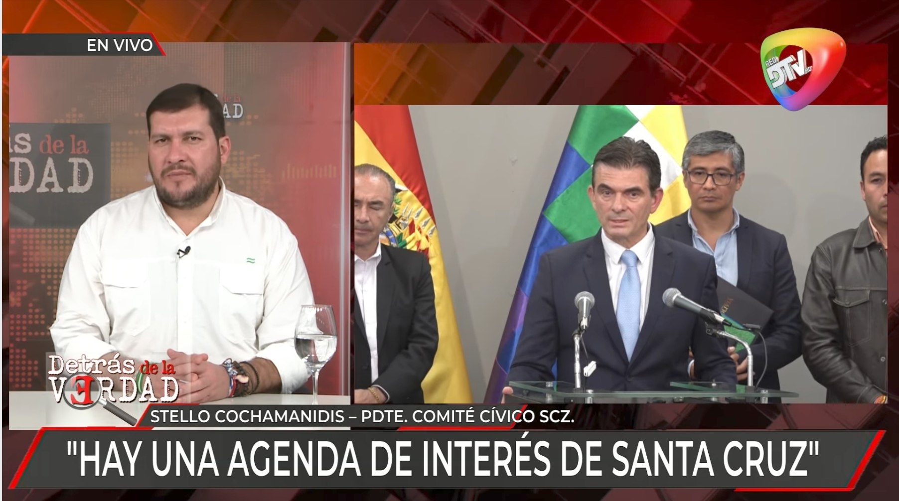 DETRÁS DE LA VERDAD PROGRAMASCochamanidis exige al gobierno de Paz cumplir compromisos del modelo 50-50 y apoyar al agro cruceñoClaudia Cuarite1 de noviembre de 20251 de noviembre de 2025 1 de noviembre de 20251 de noviembre de 2025053 La Paz, 01 de nov de 2025 (RED DTV).– El presidente del Comité Cívico Pro Santa Cruz, Stello Cochamanidis, instó al gobierno de Rodrigo Paz...