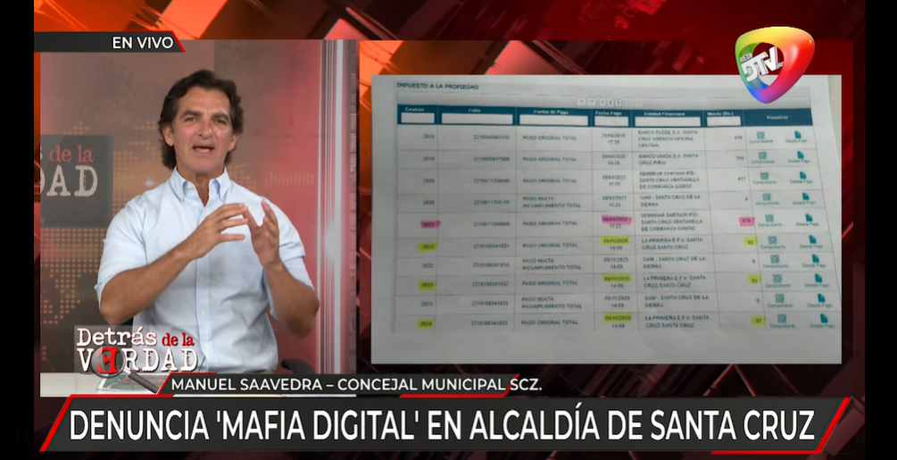 Bolivia, 3 dic 2025 (red DTV).- El concejal municipal de Santa Cruz, Manuel Saavedra, denuncia que hay una “mafia de manipulación informática” en la unidad...
