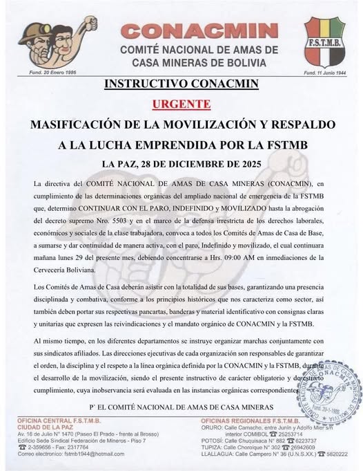 Bolivia, 29 dic 2025 (RED DTV).– La exdiputada del Movimiento Al Socialismo (MAS), afín al ala “evista”, Gladys Quispe, denunció que el Decreto Supremo 5503...