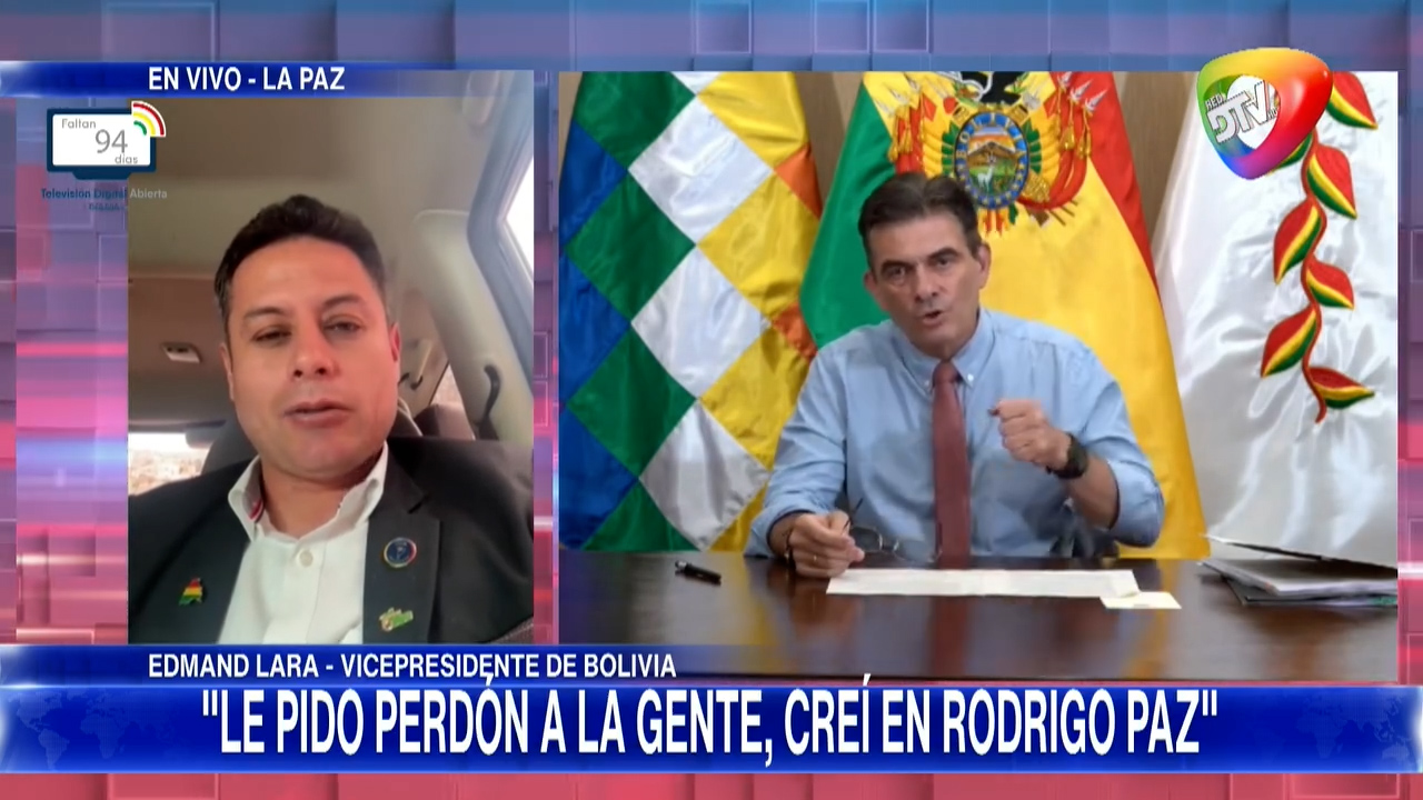 Bolivia, 25 feb 2026 (RED DTV).- El vicepresidente Edmand Lara, en una entrevista con la RED DTV, pidió “perdón” a la población ante el incumplimiento...
