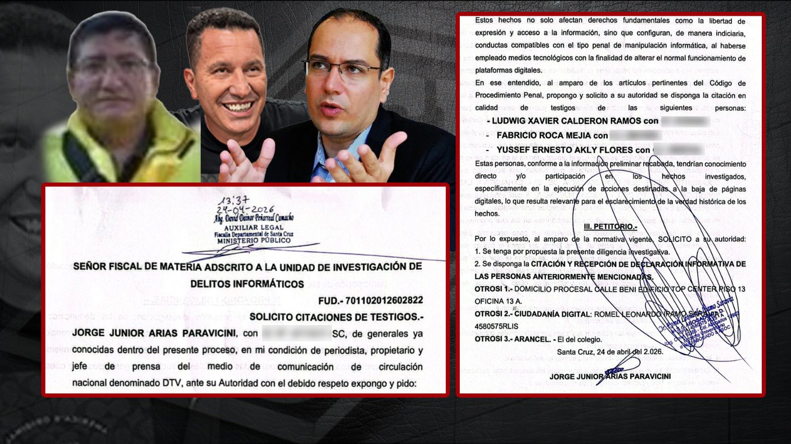 Bolivia, 24 abr 2026 (RED DTV).- El periodista Junior Arias Paravicini presentó dos memoriales ante la Fiscalía del distrito de Santa Cruz en el marco...