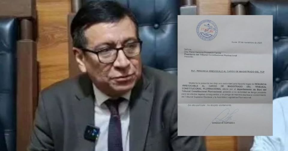 La Paz, 27 nov de 2025 (RED DTV).- El expresidente del Tribunal Constitucional Plurinacional (TCP), Gonzalo Hurtado, presentó su renuncia irrevocable al cargo de magistrado...