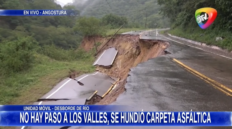 “La situación es muy crítica, no se puede circular, sigue cediendo”; Hundimiento de capa asfáltica deja intransitable vía Angostura–Samaipata