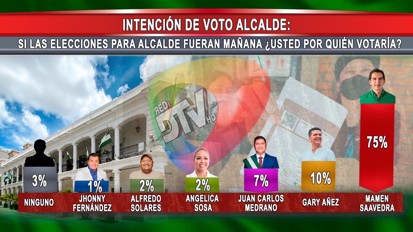 Santa Cruz, 17 dic 2025 (RED DTV).- Mamen Saavedra lidera ampliamente la intención de voto para la Alcaldía con el 75%, según una encuesta realizada...
