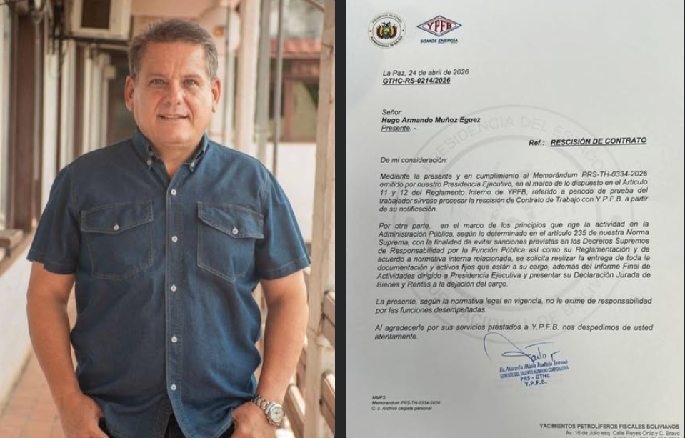 Bolivia, 24 abr 2026 (RED DTV).- Tras la posesión del nuevo presidente de Yacimientos Petrolíferos Fiscales Bolivianos (YPFB), Sebastián Daroca, se determinó la destitución de...