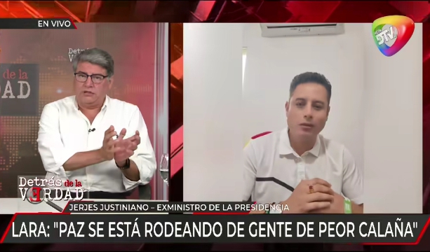 DETRÁS DE LA VERDAD“El único opositor de Rodrigo Paz es Lara, quiere desestabilizarlo”Claudia Cuarite22 de noviembre de 202522 de noviembre de 2025 22 de noviembre de 202522 de noviembre de 2025038 La Paz, 22 nov de 2025 (RED DTV).– El exministro de la Presidencia Jerjes Justiniano se refirió las recientes declaraciones del vicepresidente Edmand Lara, quien...