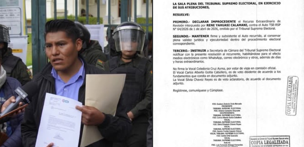 POLÍTICARecurso de Yahuasi queda sin efecto: TSE mantiene firme fallo electoralClaudia Cuarite7 de abril de 20267 de abril de 2026 7 de abril de 20267 de abril de 202604 LPZ, 7 abr 2026 (RED DTV).- La Sala Plena del Tribunal Supremo Electoral (TSE) declaró improcedente el Recurso Extraordinario de Revisión interpuesto por el candidato...