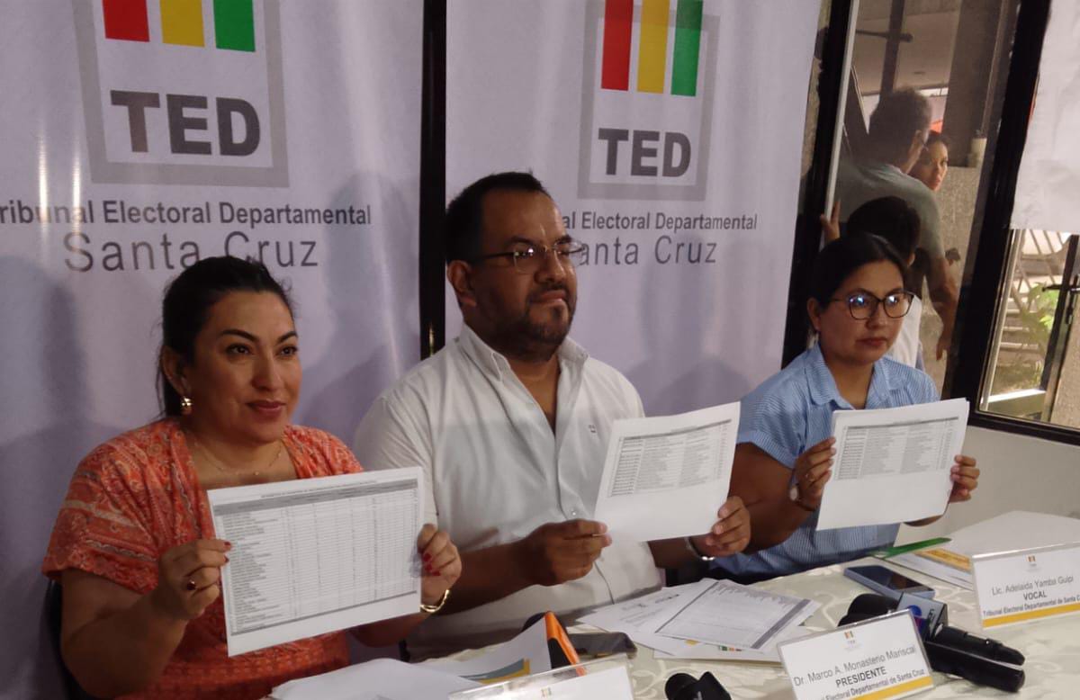 TED SCZ informa que 12 candidatos fueron inscritos para la Gobernación y 15 para la Alcaldía cruceña