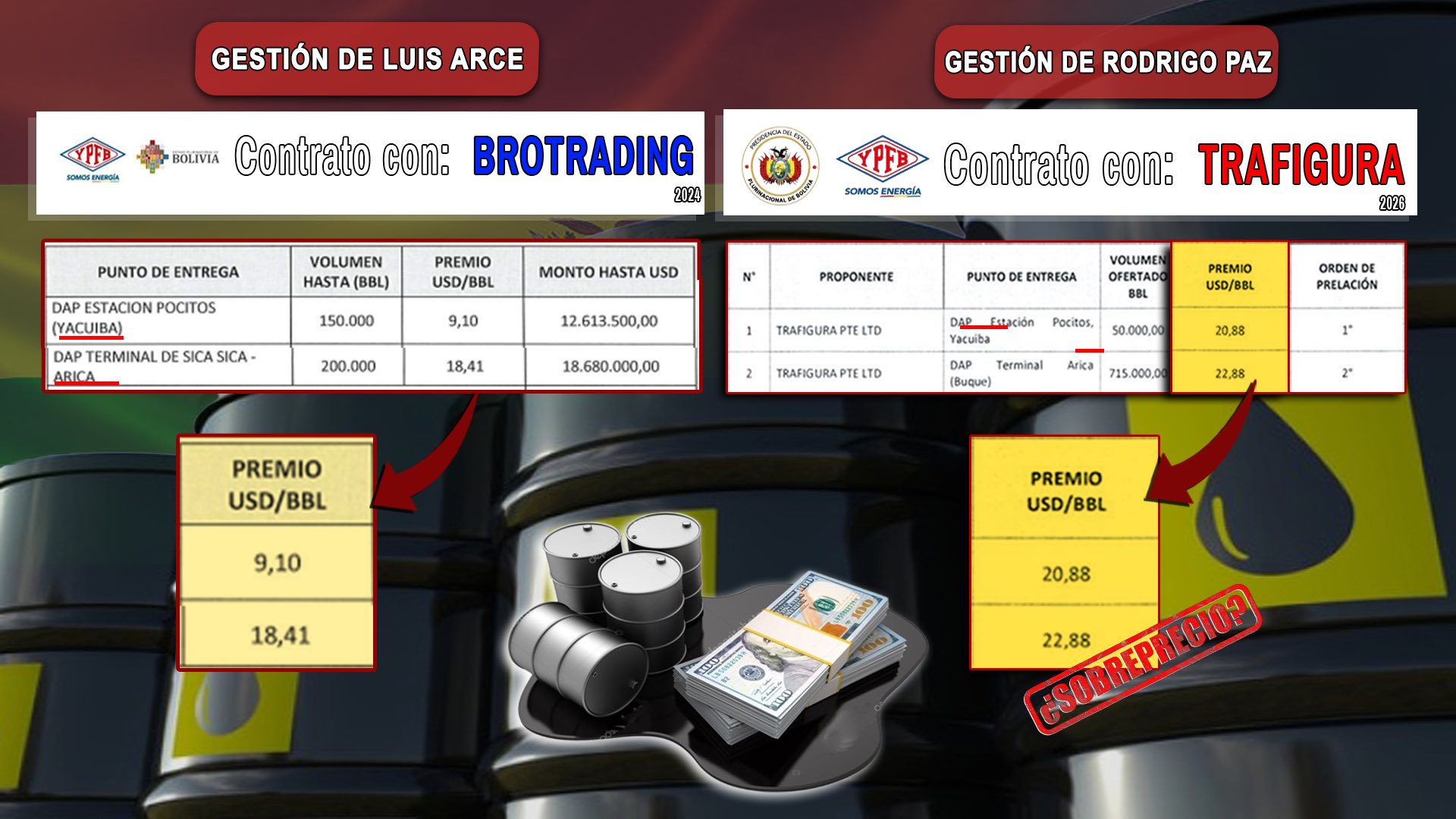 Estos son los contratos de suministro de crudo firmados con Botrading S.A. y Trafigura; gestión de Rodrigo Paz paga $us. 4 millones de sobreprecio