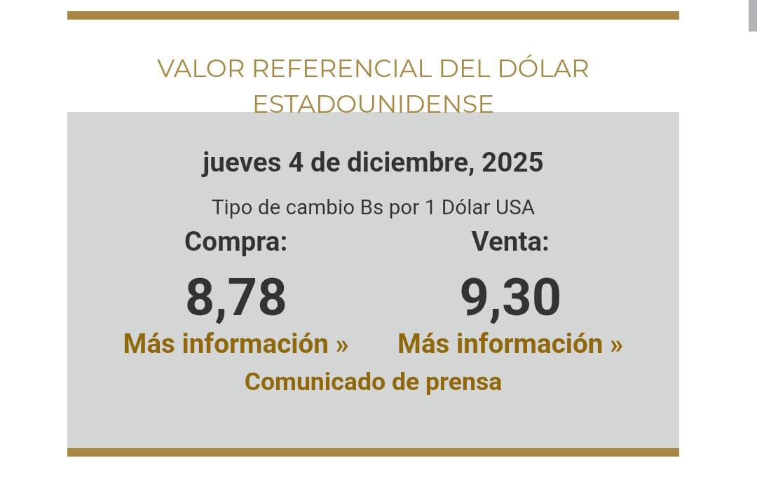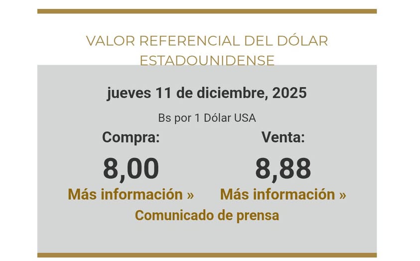 Bolivia, 8 dic 2025 (red DTV).- El Banco Central de Bolivia publicó este lunes 8 de diciembre de 2025 el valor referencial del dólar estadounidense,...