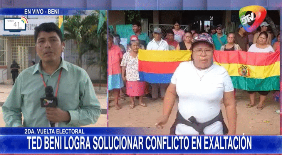 Beni, 19 abr 2026 (RED DTV).- El Tribunal Electoral Departamental (TED) de Beni logró encaminar la solución de un conflicto registrado en el municipio de Exaltación, donde un grupo de habitantes impidió inicialmente la instalación de mesas de sufragio en la unidad educativa José Max Paredes, en el marco de la segunda vuelta de la elección de gobernador.