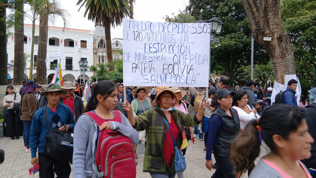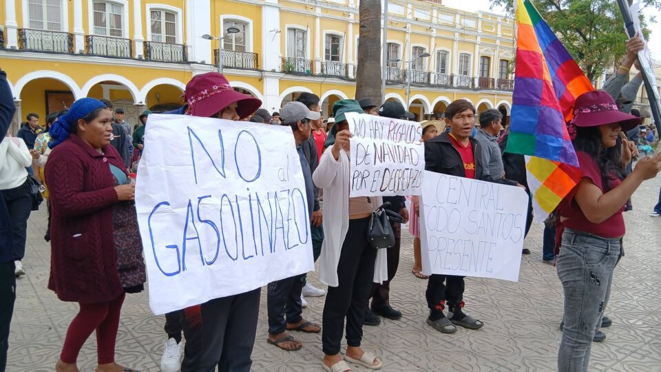CBBA, 24 dic 2025 (RED DTV).- En su tercer día, sectores populares y cocaleros recorrieron este miércoles las calles del centro de Cochabamba en rechazo y demanda de abrogación del D.S. 5503. Entre consignas y carteles, los manifestantes alertaron: “No hay regalos de Navidad por el decretazo”, “No al gasolinazo”, “Maldito decreto 5503 de 120 artículos, la destrucción de nuestra querida patria Bolivia, salvémosla” y “No permitamos las privatizaciones que se regalan a extranjeros”. La movilización evidencia el descontento creciente de la población frente al decreto.