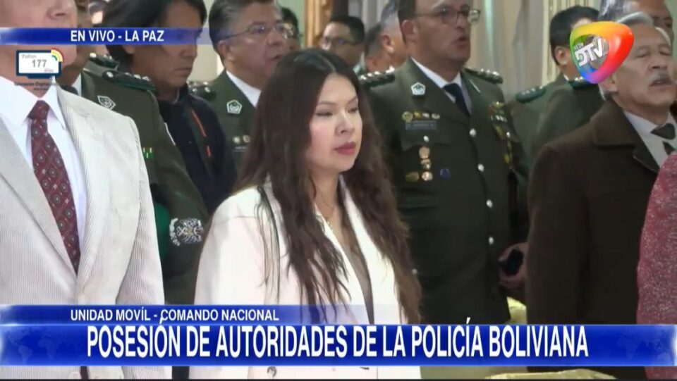 Bolivia, 4 dic 2025 (red DTV).-La diputada Diana Romero, esposa del vicepresidente Edmand Lara, participó hoy en el acto de posesión de nuevas autoridades de la Policía Boliviana.